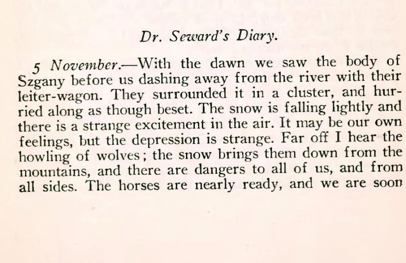 It is written in a epistolary form, which only adds to it’s unique narrative and pulls you in all the more. Excerpts from the characters’ journals, printings of telegrams and the pasting of newspaper clippings are all arranged so that one almost feels as if the evidence was all piled up, arranged in chronological order, and handed to the reader in such a way to prove that this was all a real event–which leaves peoples of vivid imaginations with an unsettled feeling in the pit of their stomachs.